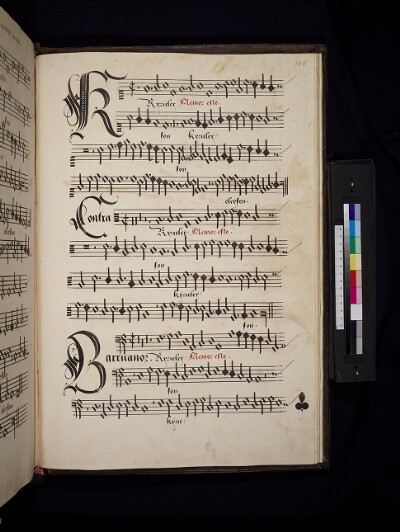 1–18v | Missa Cum jocunditate = Missa Dirige 3.4 | [P. DE LA RUE] | |