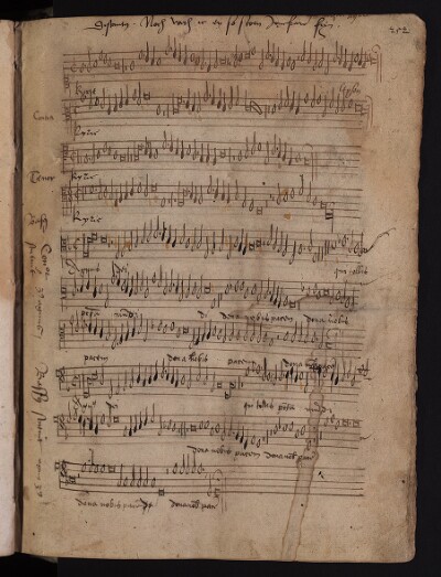 | 26v–29v | Missa En douleur en tristesse a 5 = Missa in diapason: Kyrie | 5 | Noel Bouldewjn | |