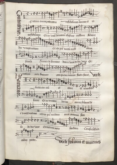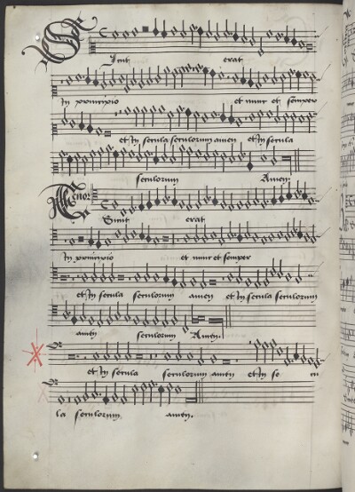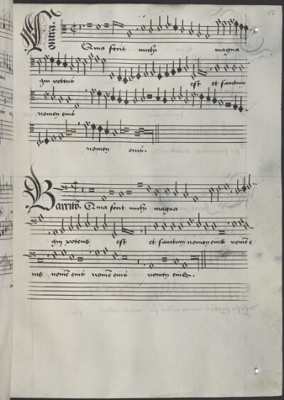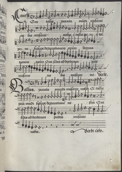 General Note[mq. inc. du Sup. et T]=opening folio removed, loss of Sup & Ten Au T du Christe: Inter natos mulierum . . .Au T du Gloria: Iste puer magnus coram dominoAu T du Credo: Elisabet ZacharieAu T du Sanctus: Puer qui natus estAu T du Pleni: Conscius ipse sibiAu T du Benedictus: Vini maximumAu T de l'Agnus Dei: Apertum est os Zacharie |