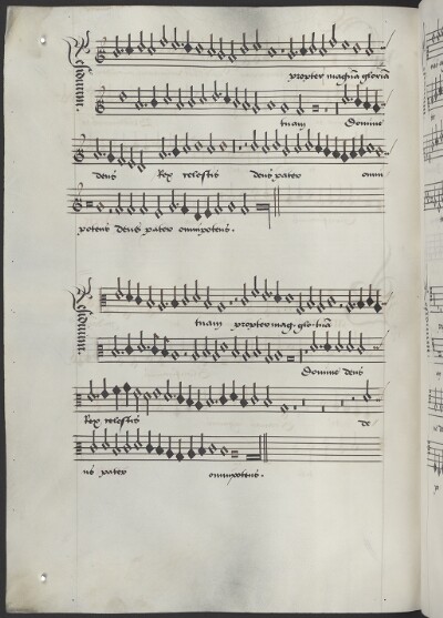 General Notefinal opening (110v-111r) contains "Resolutio canonum", written-out staves clarifying the instructions in the Agnus, by another hand |