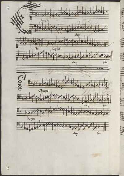 General Note[mq.inc. du Sup. et T]ie first folio removed, loss of Sup & Ten Ct et B: Kyrie Sancta Trinitas |