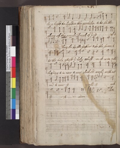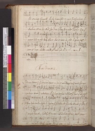 General NoteMagnificat & Nunc dimittis from the First Service are copied at ff. 93v onwards |