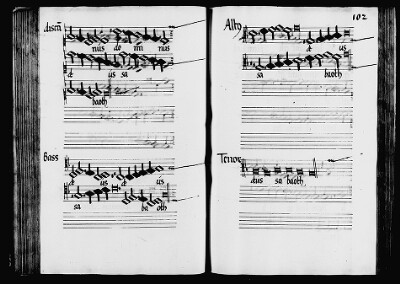 | 57v–63 | Te Deum laudamus 26.16 (2p. Patrem immensae majestatis; 3p. Te ergo quaesumus) | - | [Josquin/Mouton/Silva] | |