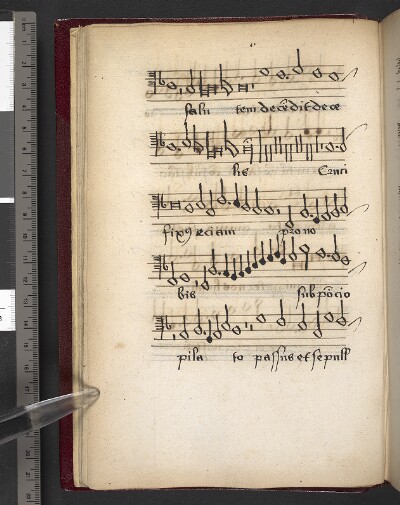 General NoteNotes: followed by unnumbered folio with blank staves on both sides; |