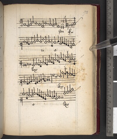 General NoteNotes: fragment: half of page cut - piece seems to end in bottom line though (followed by barlines and a +'); C4 only at beginning, then C3; |