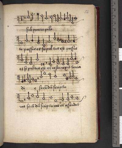 General NoteAnnotations/Corrections: V: VOC:' and '8' at beginning; 'DiCO' and 'Sicut' in third and fourth line, at beginning of 2a and 3a pars; several times '3' under notes in top and third lines; 'Ad romauos' at end; item no. '12' entered only in pencil (others are in ink); Notes: From Constanzo Porta's Musica in introitus missarum (Venice 1566), In festo S. Luciae virginis et martyris (all chant passages removed); |