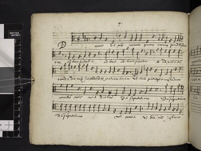 General NoteNotes: Copied in score across openings: bottom of 7r, top of 7v to top of 8r, bottom of 7v to bottom of 8r, ends top of 8v.; |