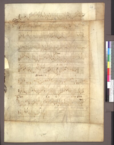 | 48–48v | Missa Orsus orsus: Gloria (fragments) | [J. MARTINI] | |