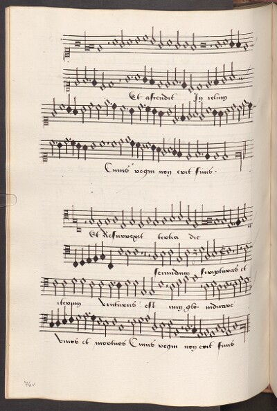 | 99v–103 | Salve regina misericordiae Vita dulcedo II: Ad te suspiramus gementes et flentes III: Et Jesum benedictum fructum ventris IV: O pia | Anon. | Anonymous |