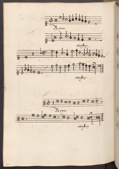 | 115v–118 | Salve regina misericordie Vita dulcedo Cantus firmus in T: "Myns liefkens bruyn ooghen" II: Ad te suspiramus gementes et flentes III: Et Jesum benedictum fructum ventris | Anon. | Anonymous |