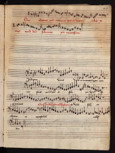 | 108v–112 | Salve regina misericordie Vita dulcedo Cantus firmus in D: "O werde mont" II: Ad te suspiramus gementes et flentes III: Et Jesum benedictum fructum ventris IV: O pya | Anon. | Anonymous |