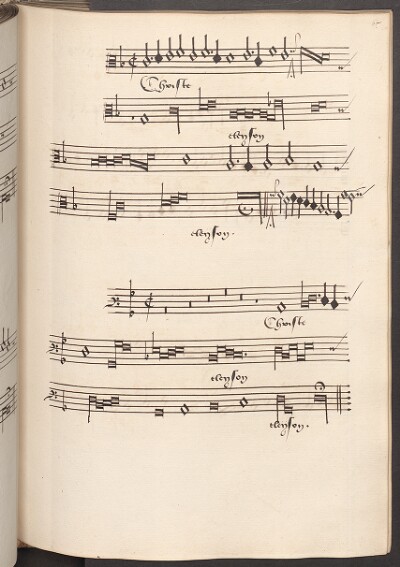 | Folio / Pages | Composition / Item title | Number of voices | Source attribution | Composers (? Uncertain) |