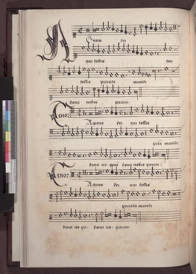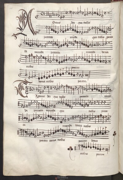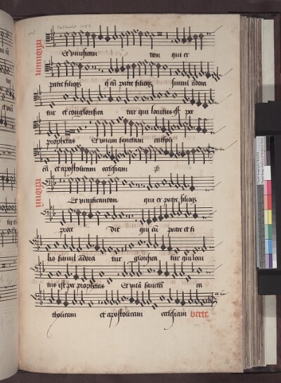 | inside front (1v)–rear cover (2v) | Credo [Patrem omnipotentem] (6vv) | Petrus de la Rue | |