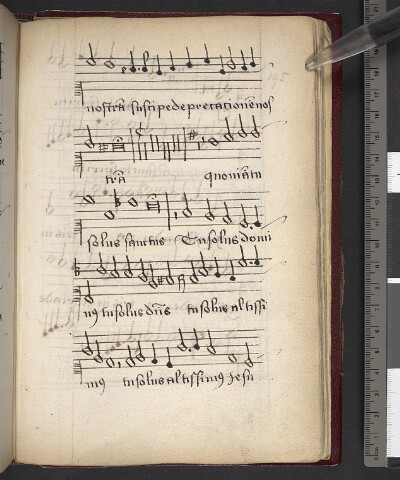 General NoteAnnotations/Corrections: No 99' in top right corner of page; Notes: CF Kyrie Le Roy, Alleluia / Obtine sacris, Sequence Ave praeclara Maris stella, O...; |