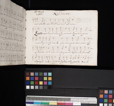 Lord nowe lestest thow thi seavant depart in peace accordynge to th[not readable] / Lorde nowe lettest thou thi servant depart in peace