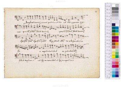 General Notebottom stave on f. 71r extended into outer margin ConcordancesGyffard; Roy App 56; Byrd Ed. 3, no. 7 |