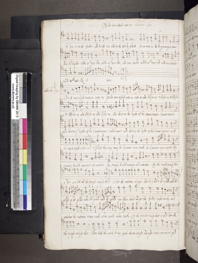 General NoteAnnotations/Corrections: some note corrections on ff. 4v, 5 and 6; at the end of the bottom line on f. 5, entered in different writing to the text: 'Secu[n]dus Contratenor.'; Notes: face (in armour and with helmet) coming out of initial 'E', with a script roll coming out of the mouth: 'GLORIA TIbI TRINITAS P[er?) IHO[nn]ES TAVARNs'. NBin this and the following, this scribe draws the left-hand side top line of the top system out into the margin - also he usually draws out the last note in length; |
