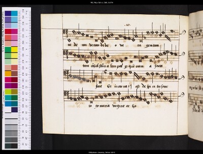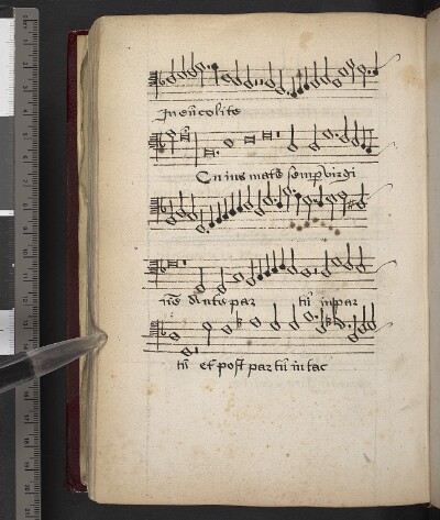 General NoteNotes: Second Osanna is 'Glory to ye o Lord in the hyst'; some text in red (and part of clefs - on f. 107 red bit in clef of middle line missing); |