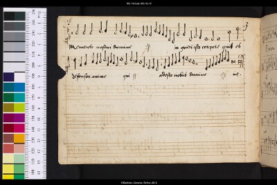 General NoteAnnotations/Corrections: Chorus' and 'Solus' indicated on f. 58; at end of f. 58 'verte'; 2a pars beginning on f. 58v (no title); last note of f. 58v corrected or split; |
