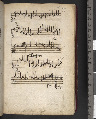 General NoteAnnotations/Corrections: +' under first note of second line on f. 55 and at beginning of some new sections (bottom line of f. 55 and fifth line of f. 55v); Notes: only incipits of the different sections.; |