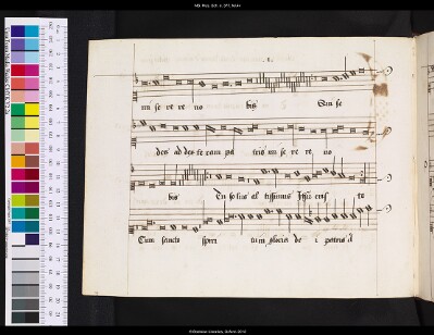 General NoteAnnotations/Corrections: Emendation to text on fol.70v; Notes: Different kind of F clef to rest of book; Two near identical parts copied side-by-side: one texted, one with 'bis' under each phrase and lenthening rather than repeating some notes: an instrumental and a vocal version of same part?; |