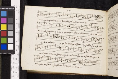 General NoteAnnotations/Corrections: at top: 'VI. Voc.'; on top of p. 345 'SECVNDA PARS' ('IDeo de precor); at bottom of p. 344, at end of last line, a flower - matching with the same flower at the beginning of the bottom line on the following page: the music continues over the page break; |