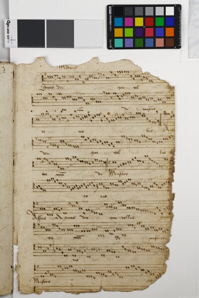 General NoteIn choirbook layout, therefore only (part of) 2 voices preserved on this recto |