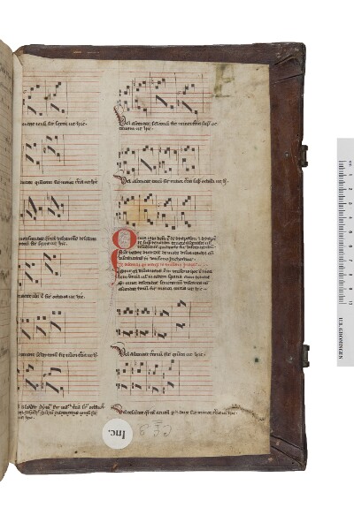 Keyboard intabulations of two French songs: Asperance and Empris domoyrs (fol. I.2); fragments from a Latin musical treatise (fols. I.1, II.1, II.2). Fols. I.1 and II.1 serve as the front and back pastedowns of Inc. 70 (fols. I.1r and II.1v are therefore not visible), fols. I.2 and II.2 as the front and end flyleaves to a Latin musical treatise, discussing ‘de varietate et modo discantandi’ of a ‘tenor’ and a ‘discantus’, with ‘quando discantus est in dyapason supra tenorem’ on fol. II.1, ‘de dyapente supra tenorem’ on fol. II.2, and ‘Quia iam dictum est de dyapason et dyapente supra tenorem, tenore ascendente vel descendente quomodo fit discantandum. Nunc restat dicendum de modo discantandi quando discantans in unisono inchoatur’ on fol. I.1.