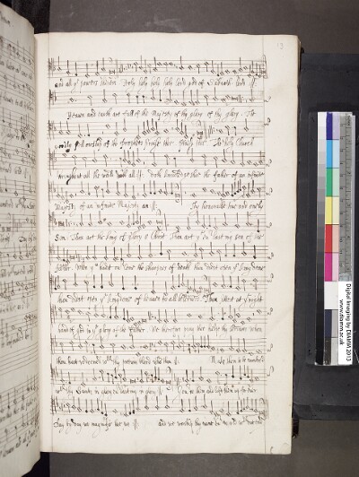 General NoteAnnotations/Corrections: 4 voc.' at top; composer name seemingly entered in paler ink; Notes: This is found also in the Peterhouse ‘Latter’ set of Caroline partbooks (see Dom Anselm Hughes…), in NYPL Drexel 5469, p.161 (the ‘Henry Loosemore Organ Book’, see Thurston Dart...), in both of which sources it is anonymous. It is found also in Ob Mus. f. 16-19 (the ‘Hamond MSS’, see Margaret Crum…), where it is attributed to ‘Osborne’ [i.e. Osbert] Parsley]. The attribution to Molle in the newly-discovered partbook is surprising, since the anthem’s musical style is formal and primitive, and is certainly more in keeping with the early Elizabethan period.;  |