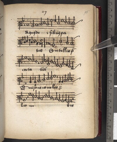 General NoteAnnotations/Corrections: at top '5 voc.'; text corr. in first line; several slurs entered to clarify note-syllable relation; at end stave drawn out into the outer margin for the final two notes; Notes: EECM 19; |