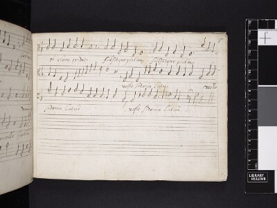 General NoteAnnotations/Corrections: some of the clefs in much darker ink (first, second and fourth lines); note corr. in top line; Notes: Las' of 'Lassus' spelt in notes ; |