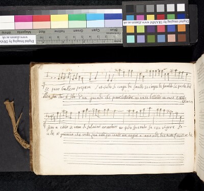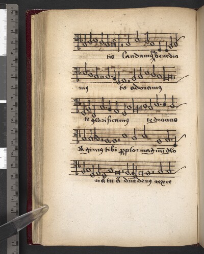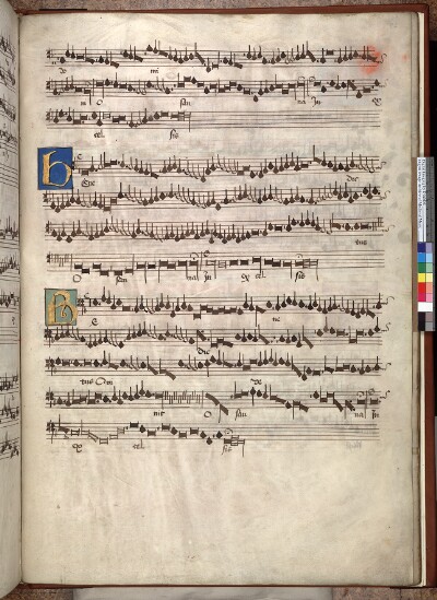 General NoteAn additional bifolio was inserted to carry this piece; it is copied on the inside of the bifolio, the outsides have only blank staves |