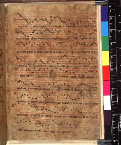General Notetext cut away at beginning of Mot; begins at words "genu flectere et summo opere" Layoutparts Item BibliographyHarrison, Frank Llewellyn (editor). 1963-. Early English Church Music. London: Stainer & Bell. Pages: (26), [facs.] plates 24-25. |