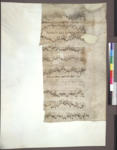 (70) I-La MS 238, 48–(70v) I-La MS 238, 48v | Missa Orsus orsus: Gloria (fragments) | - | |