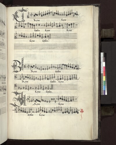 General NoteThis ms from the Alamire workshop provides a clear ascription to La Rue, of greater authority than the dual ascriptions to Serrmisy and Verdelot in the Attaingnant 1534 'Liber Tertius' print. (See Vanhulst.) Item BibliographyVanhulst, Henri. 2014. Un fragment inconnu d'un livre de chœur de Pierre Alamire. Revue belge de Musicologie / Belgisch Tijdschrift voor Muziekwetenschap, 68: 7-18. Pages: 11-16. |