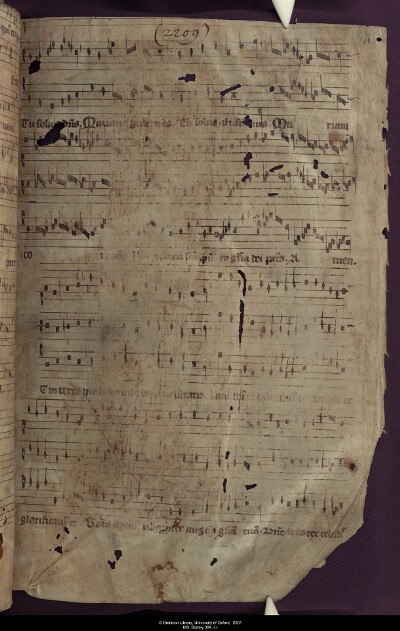 General Noteopening of a Gloria; much of Cantus cut away at top of page; first 5 notes of Tenor Primus conjectural Layoutparts |