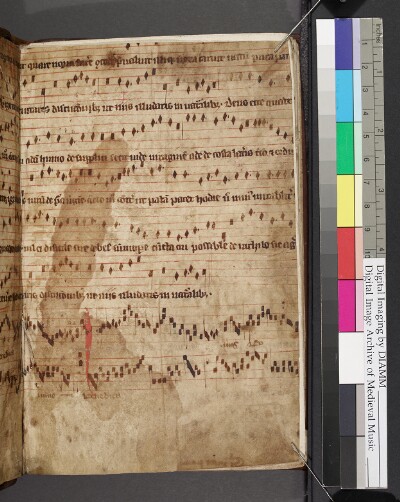 General Noteall reversed except f. i; here are most of an upper voice and one lower textless voice of the Rota "Rosa versaulis" Layoutparts Item BibliographyHarrison, Frank Llewellyn (editor). 1963-. Early English Church Music. London: Stainer & Bell. Pages: (26), [facs.] plate 1. Bent, Margaret. 1981. Rota versatilis--Toward a Reconstruction. Source Materials and the Interpretation of Music: A Memorial Volume to Thurston Dart, edited by Margaret Bent, 65-98. London: Stainer and Bell. Pages: [facs.] plate 1. Bent, Margaret. 1987. The Fountains Fragments [facsimile with introduction]. Musical Sources, vol. 26. Clarabricken: Boethius Press. Pages: [facs.] plate 12. |