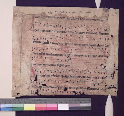 General NoteOnly the T is missing, but this turns up in Cambridge, Pembroke Coll., 228, f. IIv; the Quartus cantus is cut away a little at the bottom margin, but can be reconstructed Layoutparts |