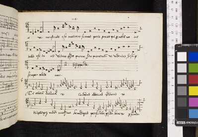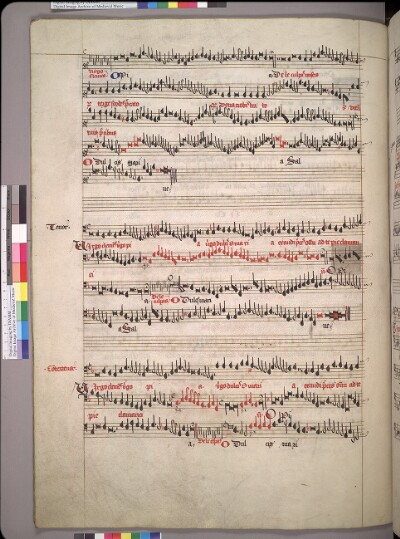 General NoteNotes: Incomplete. Impression of red staves and blue initials imprinted over top of staves.; |