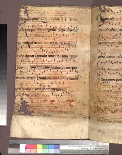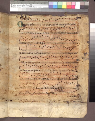 General Notefragmentary voice that is the only material visible from the original musical layer now mainly erased; either Tenor of troped chant, or monophonic. |