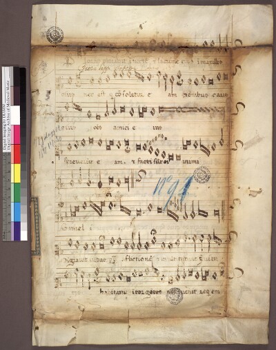 General Notefragment begins at "[Vide Domine afflic]tionem meam"; one voice on each opening, Tenor on the remains of the first opening, Cantus on verso. |